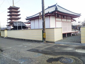 唐門の正面に建つ如来堂(国宝木造建築)