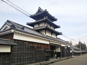 平屋建ての長屋門の上に