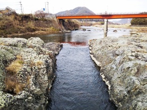 川底一面に広がる奇岩・怪岩の間を激流が縫うように流れる様が